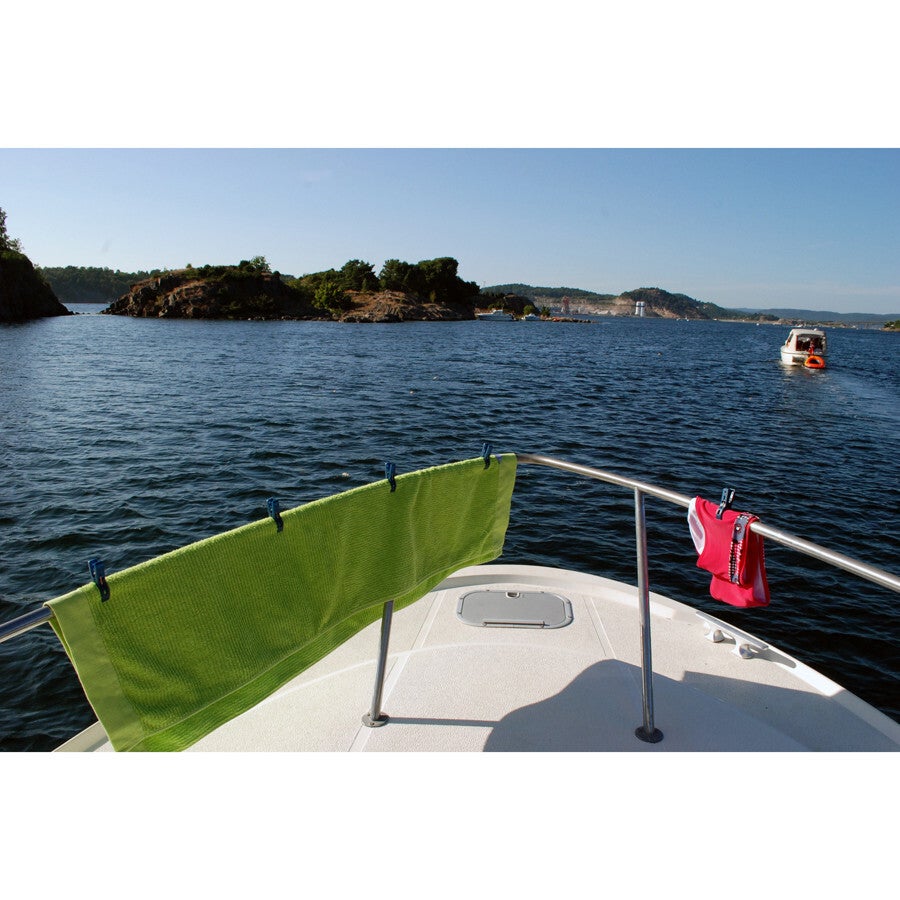 Solide klesklyper i marineblå utførelse. De er ideelle for å holde badetøy, håndklær og andre plagg på plass, selv i sterk vind, noe som gjør dem perfekte for bruk på båt, ved brygga og lignende.